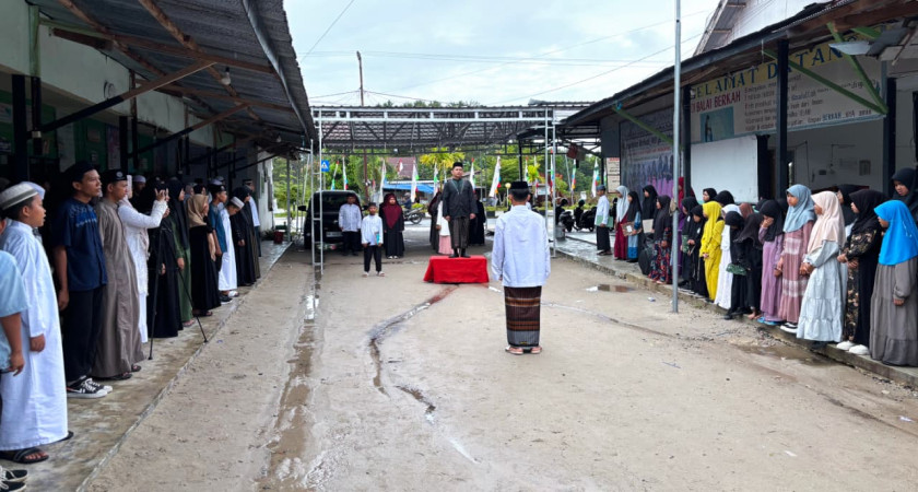 Para siswa terlihat antusias mengikuti seluruh rangkaian upacara, mengenakan busana muslim yang rapi dan sopan. Kegiatan berjalan lancar meski sempat diguyur hujan ringan, namun tidak menyurutkan semangat santri untuk tetap berdiri tegak di barisan dengan penuh kebanggaan.