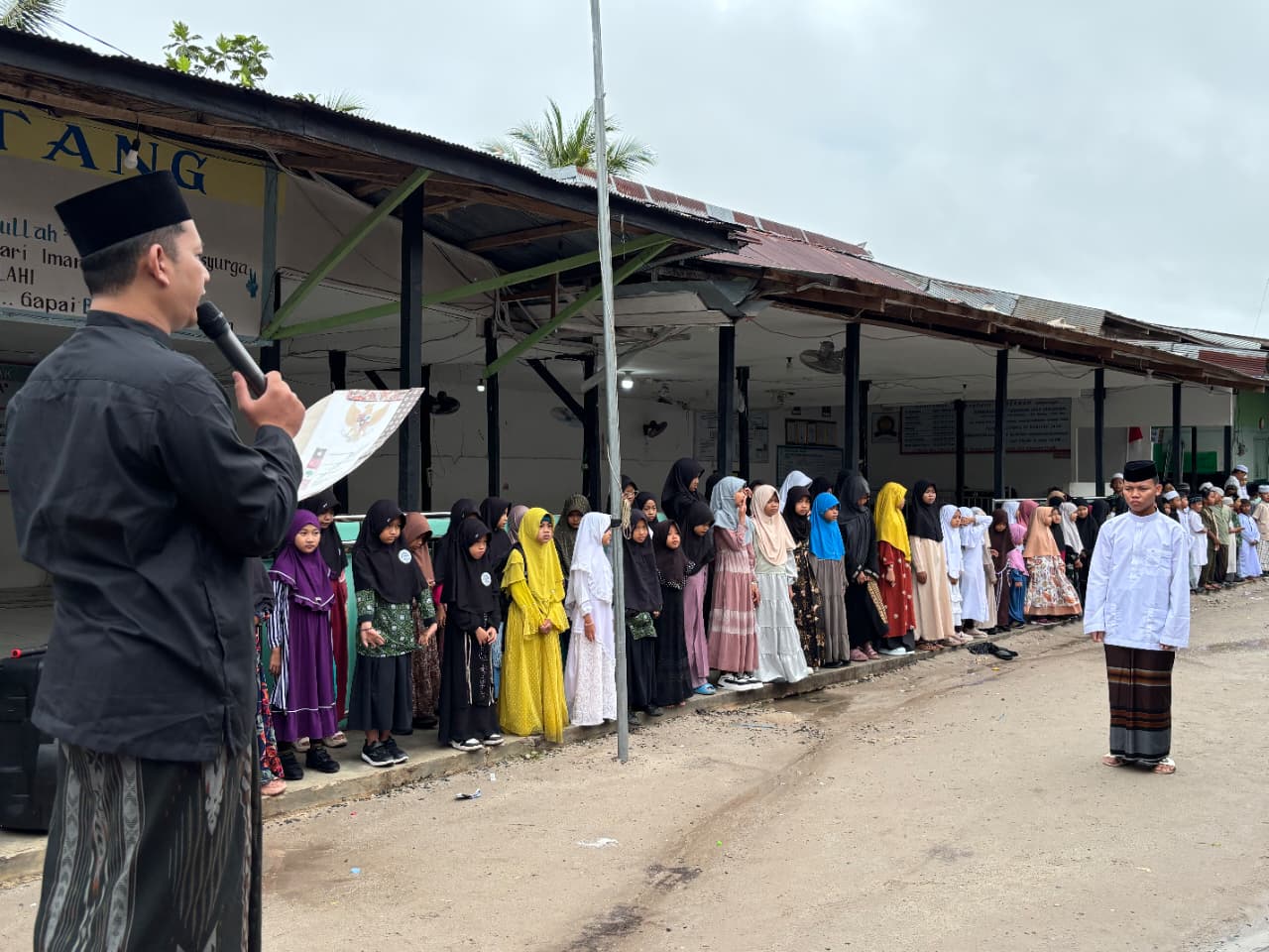 Upacara dipimpin langsung oleh Kepala Madrasah, Ahmad Sahiba, M.Pd., yang dalam amanatnya menyampaikan pesan mendalam tentang makna santri sejati di era modern.